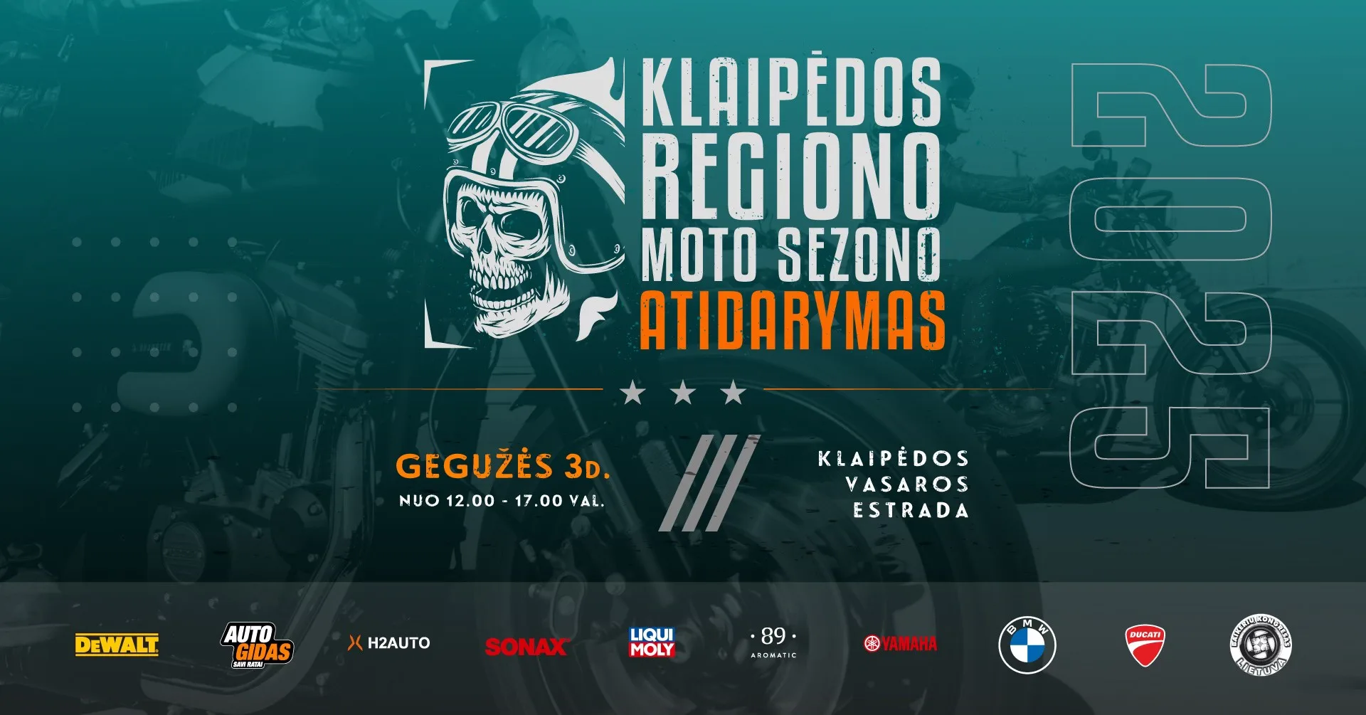 The opening of the Klaipėda Region Motorcycle Season will begin at the Klaipėda Summer Stage, where 1200+ motorcycles will gather to celebrate the beginning of the new season together.