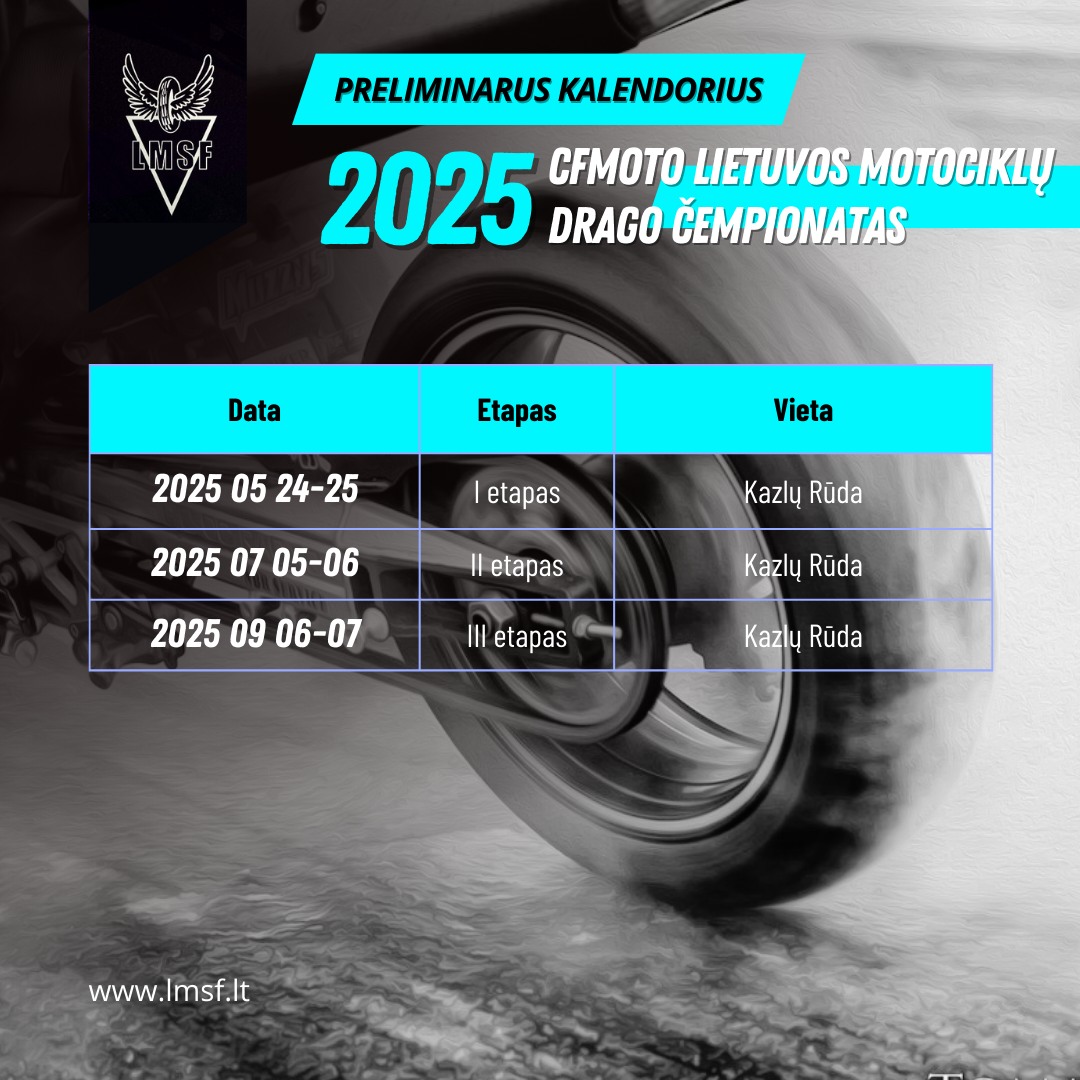 Šiais metais jūsų laukia keturi CFMOTO Lietuvos motociklų drago čempionato etapai, kol kas yra žinomos trys datos ir ketvirtoji bus paskelbta jau greitai.