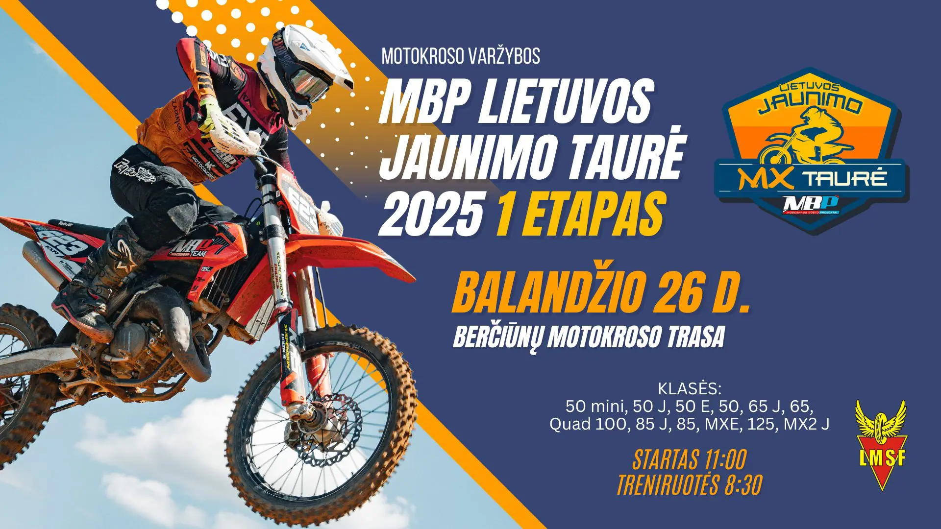 Varžybų papildomi nuostatai ir tvarkaraštis: https://www.lmsf.lt/download/motokroso-varzybu-mbp-lietuvos-jaunimo-taure-2025-i-etapo-papildomi-nuostatai/