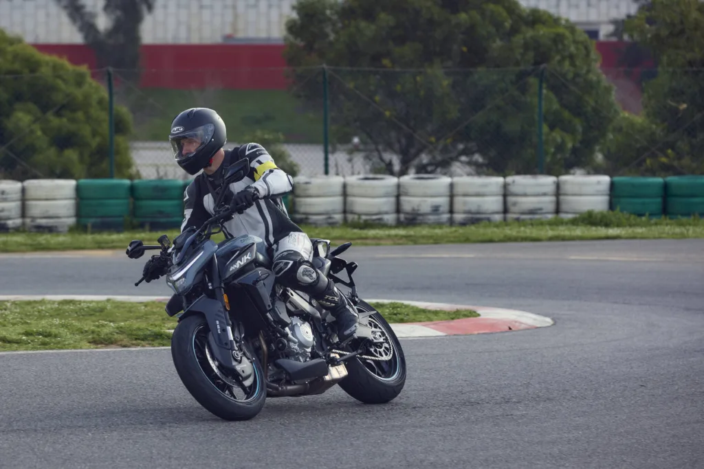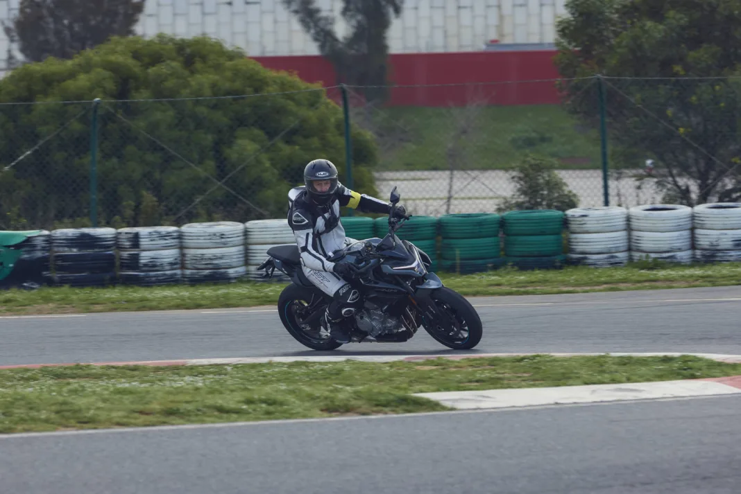 Galimybę išbandyti 675NK motociklą turėjome Algarves Autodromo komplekso kartingų trasoje, kuri savo konfiguracija nenusileidžia jokiai didelei lenktynių trasai ir savo įdomiuose posūkiuose leido pajusti šio motociklo charakteristikas. Pirmiausia, žinoma, jo širdis su savo išskirtiniu trijų cilindrų varikliams būdingu garsu. Labai tolygus, mažai vibracijų skleidžiantis ir maloniai, nors gal kiek tylokai, skambantis agregatas. Ir net jei labai lygiai generuojama jėga iki pat raudonos tachometro padalos sukelia kiek mažiau jaudulio nei, tarkim, chuliganiškasis 800NK, tai suteikia daugiau pasitikėjimo valdant motocikla posūkiuose važiuojant agresyviau. Būtent dėl šių charakteristikų galvoju, kad galimai šis modelis bus labai neblogas pasirinkimas mažiau patirties turintiems motociklininkams. Žinoma, kasdienišką motociklo naudojimą lenktynių trasoje sunku išbandyti, tad šiuos dalykus dar reikės patikrinti Lietuvoje, bet užtikrintai galiu pasakyti, kad nekantrauju ant 675NK atsisėsti vėl.